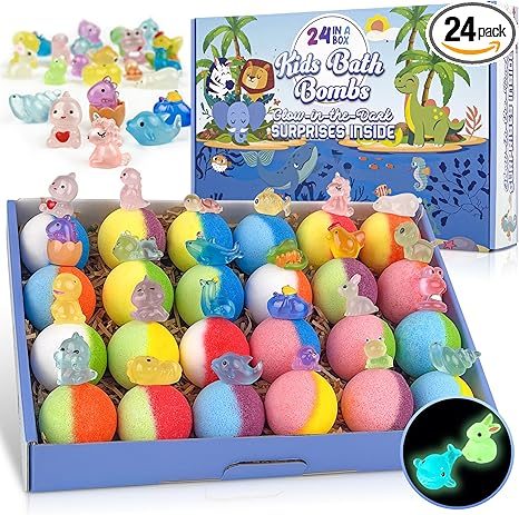 Bath Bombs for Kids, 24pcs Bath Bombs with Glow in The Dark Surprise Inside, Natural and Organic Colorful Bubble Bath Fizz for Kids, Perfect Birthday, Halloween, Or Christmas Gift for Boys and Girls!