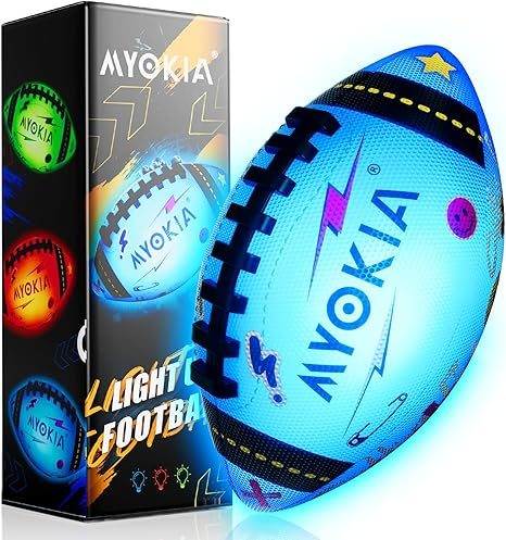 Light Up Football Birthday Gift for Kids & Teens 3-15+,RGB Rechargeable Glow in The Dark Ball with Pump & USB Cable, Tri-Color (Red, Green, Blue), Size 6, Outdoor Night Games