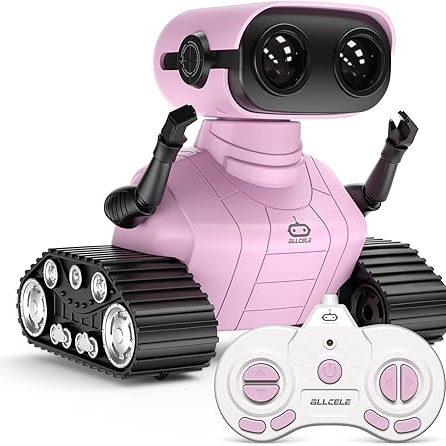 ALLCELE Girls Robot Toy, Rechargeable RC Robot for Kids, Remote Control Toy with Music and LED Eyes, Gift for Children Age 3 Years and Up - Pink