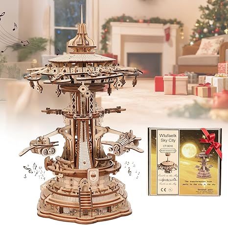 3D Wooden Puzzles for Adults Mechanical Music Box - Sky City Rotating Model Building Kits | Wood Puzzle DIY Toys | Challenging Christmas Birthday Gift Idea