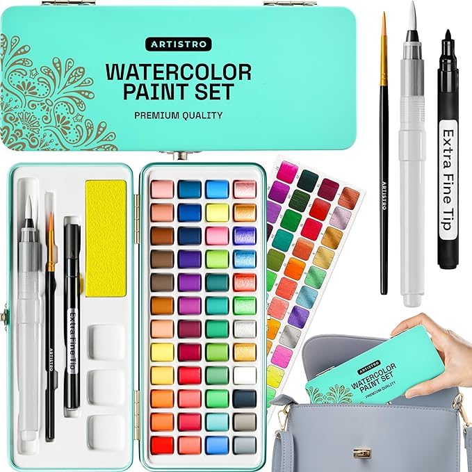 ARTISTRO Watercolor Paint Set Portable, Palette Set with Metallic Colors for Workbooks - Mini Travel Painting Kit for Artists, Professionals, Adults, Kids, Girls&Boys - Art Supplies, Christmas Gift