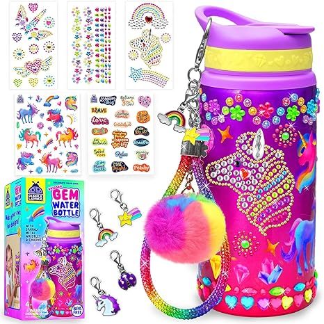 PURPLE LADYBUG Decorate Your Own Water Bottle Kit for Girls - Unicorn Design with Glitter Gem Stickers, Gifts for Girls Ages 5-8-10 Years Old Birthday, Fun Craft for Kids, Christmas Gifts Girl